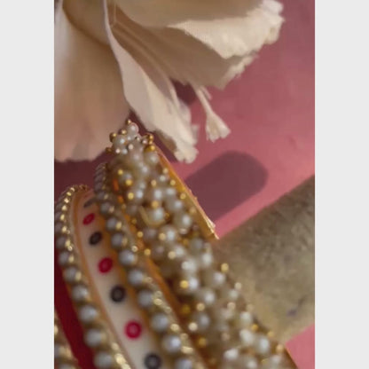 At Chotteylal & Sons, we believe a bridal chura is more than just an accessory. It’s a legacy wrapped around your wrists, made with precision, pearls, and soulful details. Our Semi Pearl Red Chura isn’t just worn—it’s felt. Designed to complement your lehenga and your inner radiance, this timeless set carries the heart of tradition and the touch of modern grace.