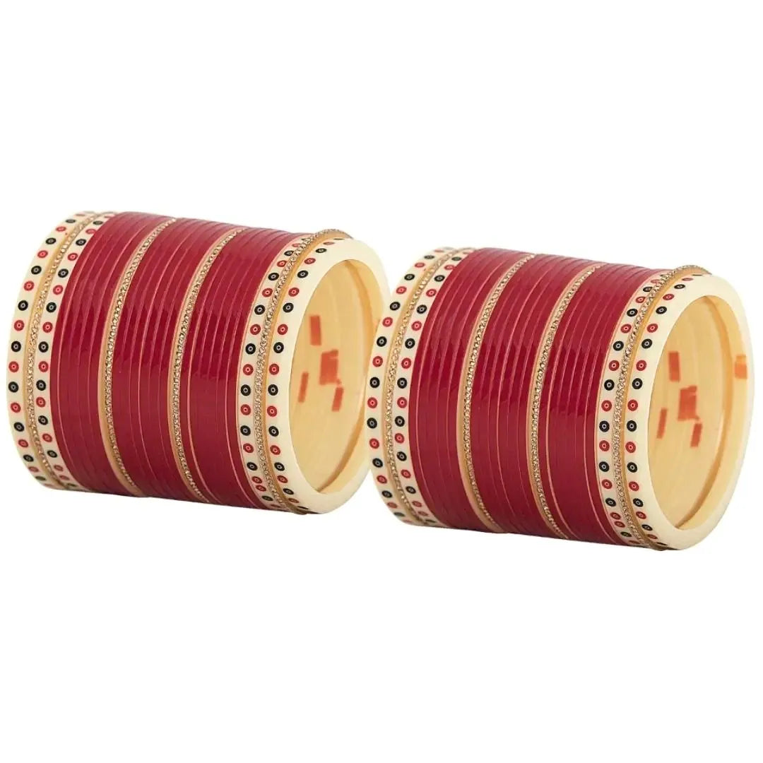 This isn't just any Dark red chooda this is your forever keepsake. The Dark Red Semi Pearl Bridal Choora from Chotteylal & Sons, India’s oldest and most trusted bridal accessory brand, is a tribute to generations of tradition blended with modern grace.