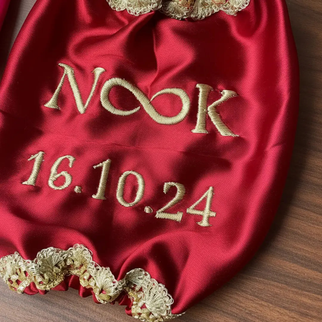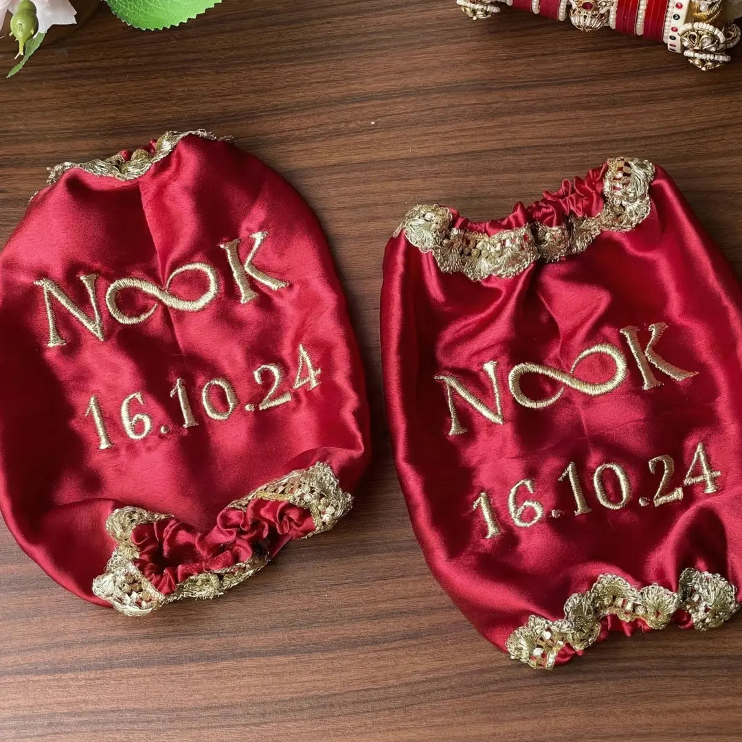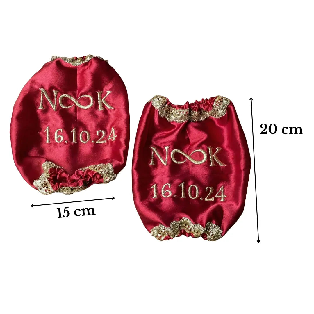The Classic Antique Customisation Baby Pink Chooda Cover – Logo and Date offers soft elegance, modern charm, and high-quality craftsmanship for your special day. Crafted from premium satin, it provides a smooth, luxurious texture while keeping your Chooda protected throughout all rituals. The baby pink shade adds subtle sophistication and serenity, perfect for contemporary or minimalistic bridal themes. Its antique-inspired design brings timeless beauty, making it a keepsake to cherish long after your wedding. Coming from Chotteylal and Sons, a brand renowned for excellence in wedding essentials, this cover combines quality, functionality, and sentimental value. The Logo and Date {Text} customisation lets you include both your personal logo and wedding date, creating a unique and memorable accessory. Protective, elegant, and meaningful, this Chooda cover ensures your Chooda looks stunning in every ritual, photograph, and ceremonial display.
