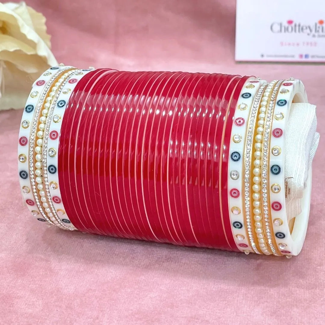 Semi Pearl Dark Red Designer Chuda | Chura | Chooda