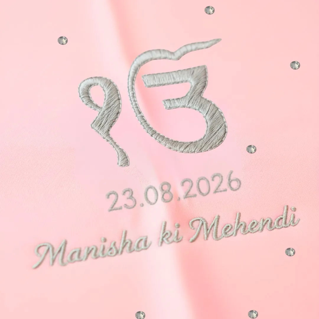 Baby Pink Ik Onkar Motif Mehendi Mat With 2 Line Text