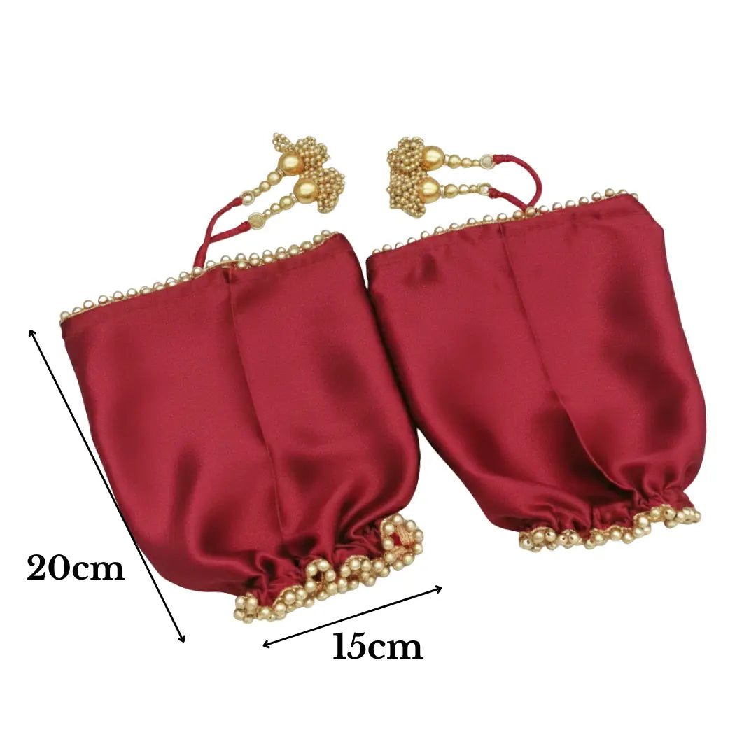 The Parineeti With Pearl Beads Maroon Chooda Cover is a luxurious accessory that adds charm and elegance to your wedding ceremonies. Made from premium velvet, it provides a soft, smooth texture while keeping your Chooda protected. The pearl bead embellishments enhance its sophistication, making it a standout piece. Its deep maroon shade exudes royal elegance, tradition, and timeless beauty, perfectly complementing any bridal attire.
