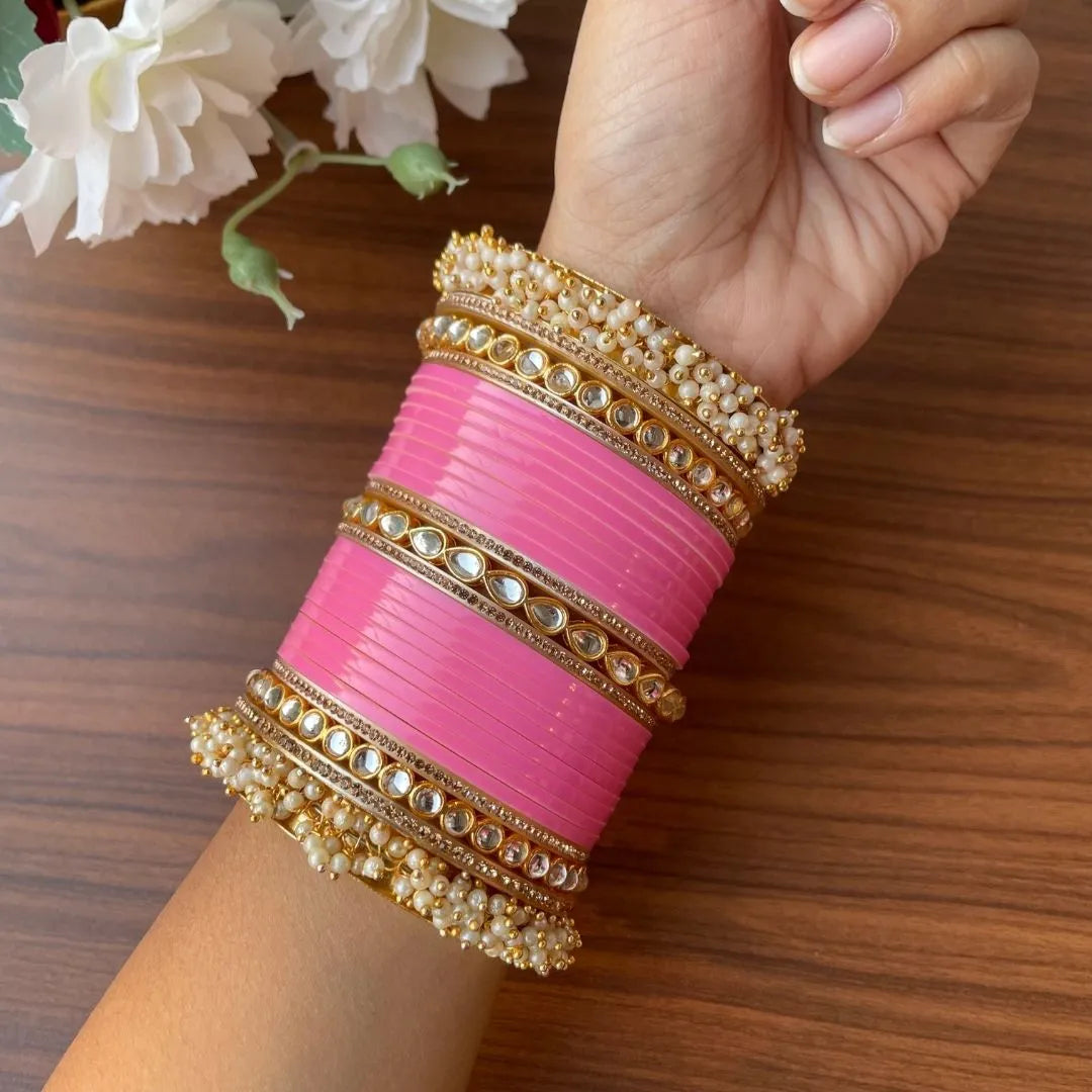 Semi Pearl Pink Designer Chuda | Chura | Chooda
