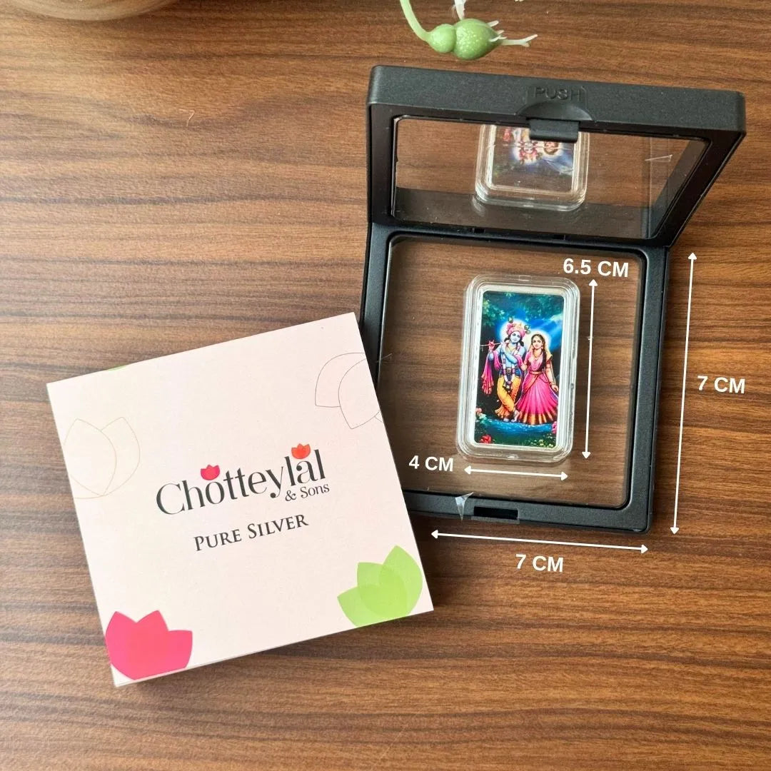 UNIQUE SILVER COIN GIFT – Featuring a UV-printed Radha Krishna design in a bar shape, this coin is a thoughtful, meaningful, and standout gift for spiritual and auspicious occasions.