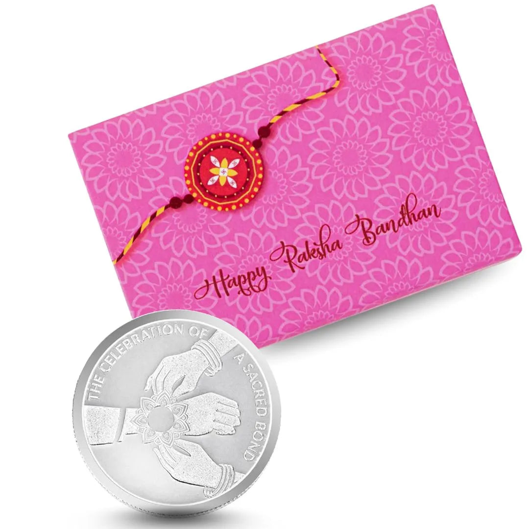 Rakhi on Hand, Silver Coin 10 Gram, Blister Card, 999 Purity Silver Coin - Ready To Ship